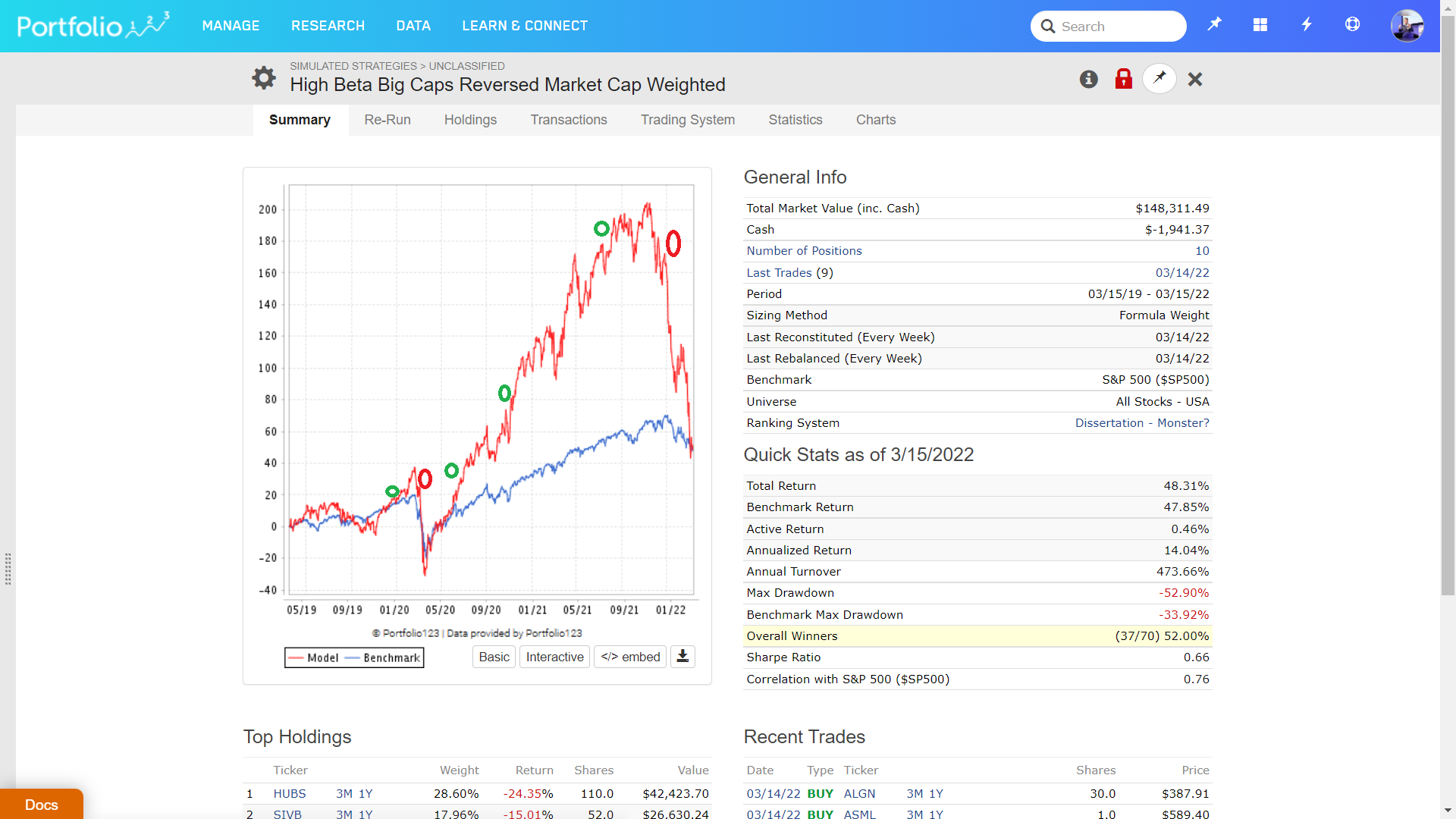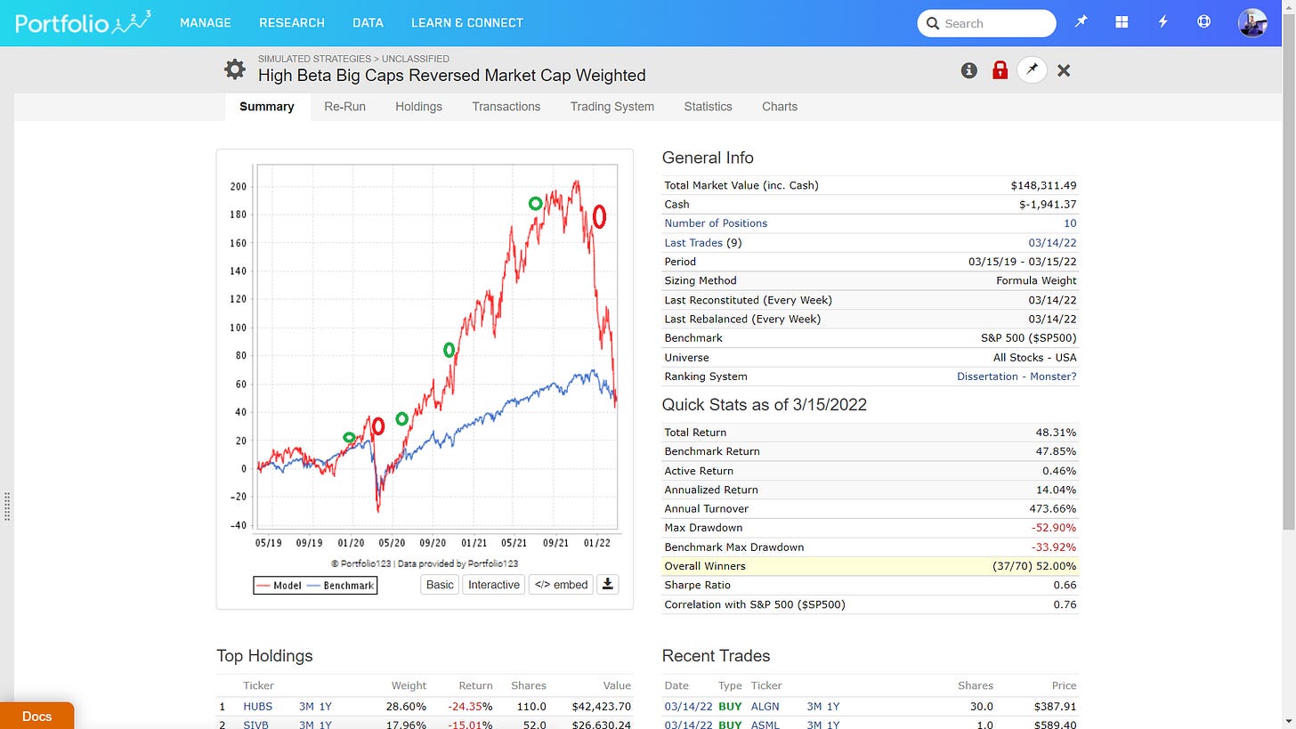 High Beta Systems show relative strength, especially when the market has a drawdown.