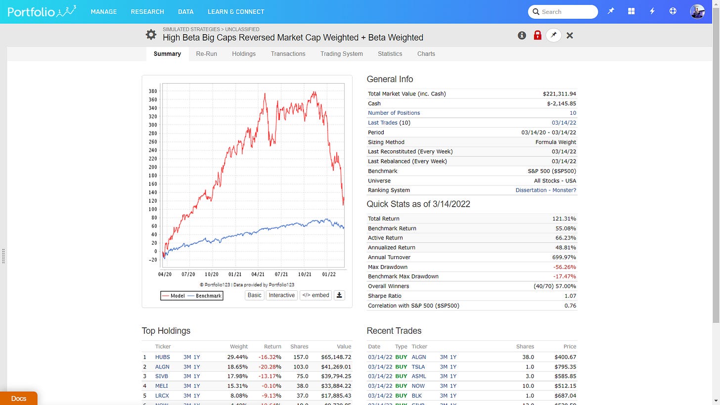 GDP down, Inflation up: Stagflation —> Small cap value momentum is doing well. High Beta is not doing well at all! Bonds are not doing well. Shorting High Beta in a downtrend with extreme high valuations is a good idea. Combine with longs on small cap value momentum and you are protected!
