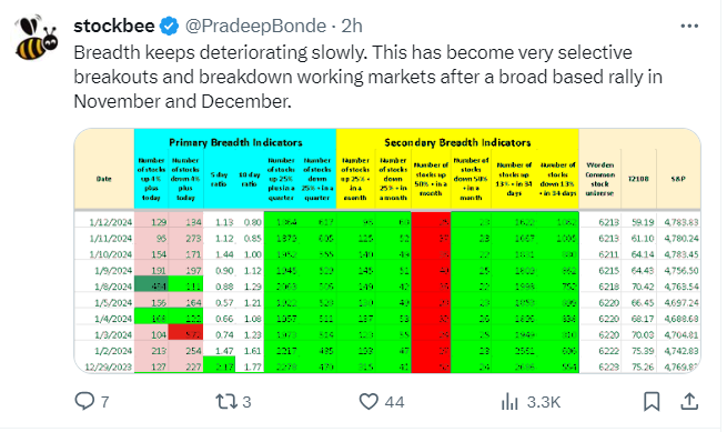 I am still watching this video, but my notes tell me, that from around 17th of January a window of weakness in terms of flows start (and this already shows in breadth!):