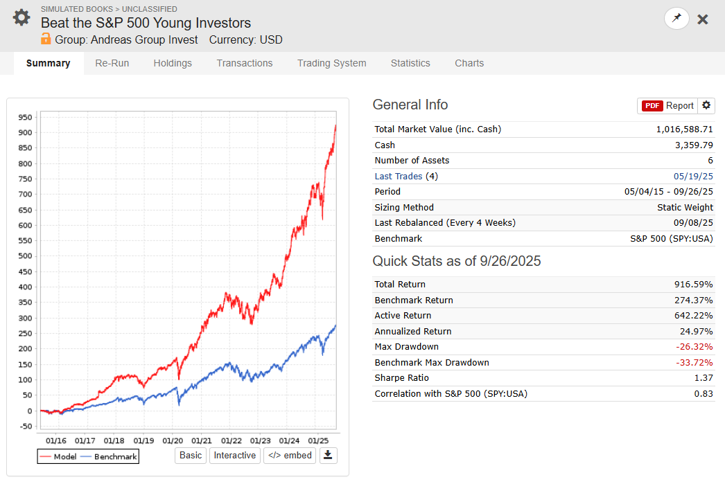 Strategy Book Beat the S&P 500 Young Investors: Out of sample live trading since October 2024