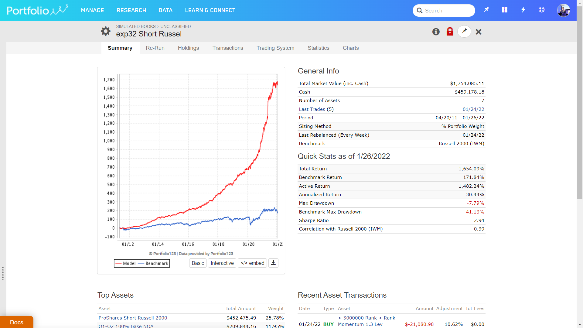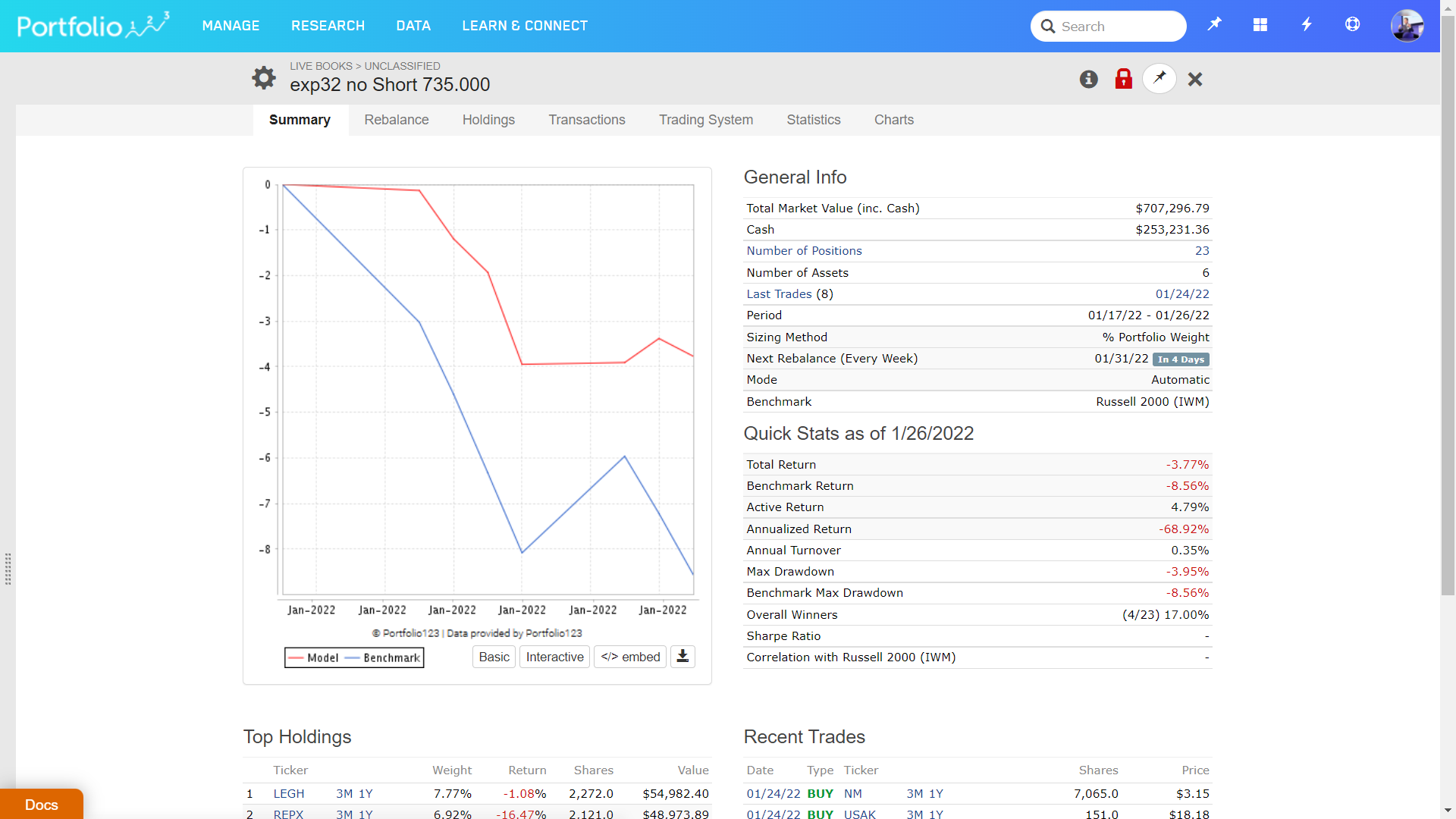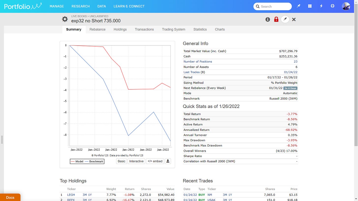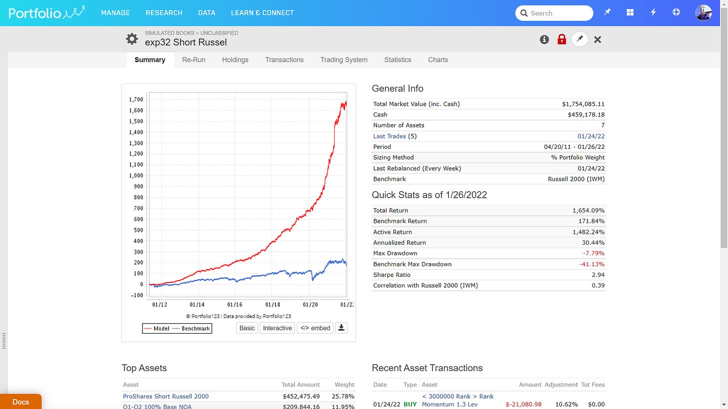 So, I will put on an IWM short here to protect my 60% long positions.
