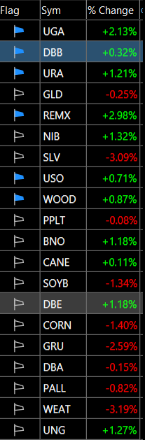 This list of commodities is also sorted by 66 day momentum, the cycs of the commodities are leading. Good!