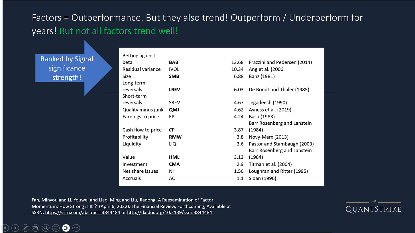 So, if you use for example the value (3.13, see above table) factor to determine the regime and value has the same weight as for example high beta (13.68) you do something terribly wrong! Also the trend strength of value is only mezzo mezzo.