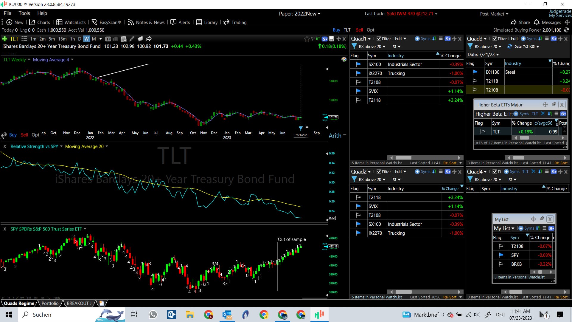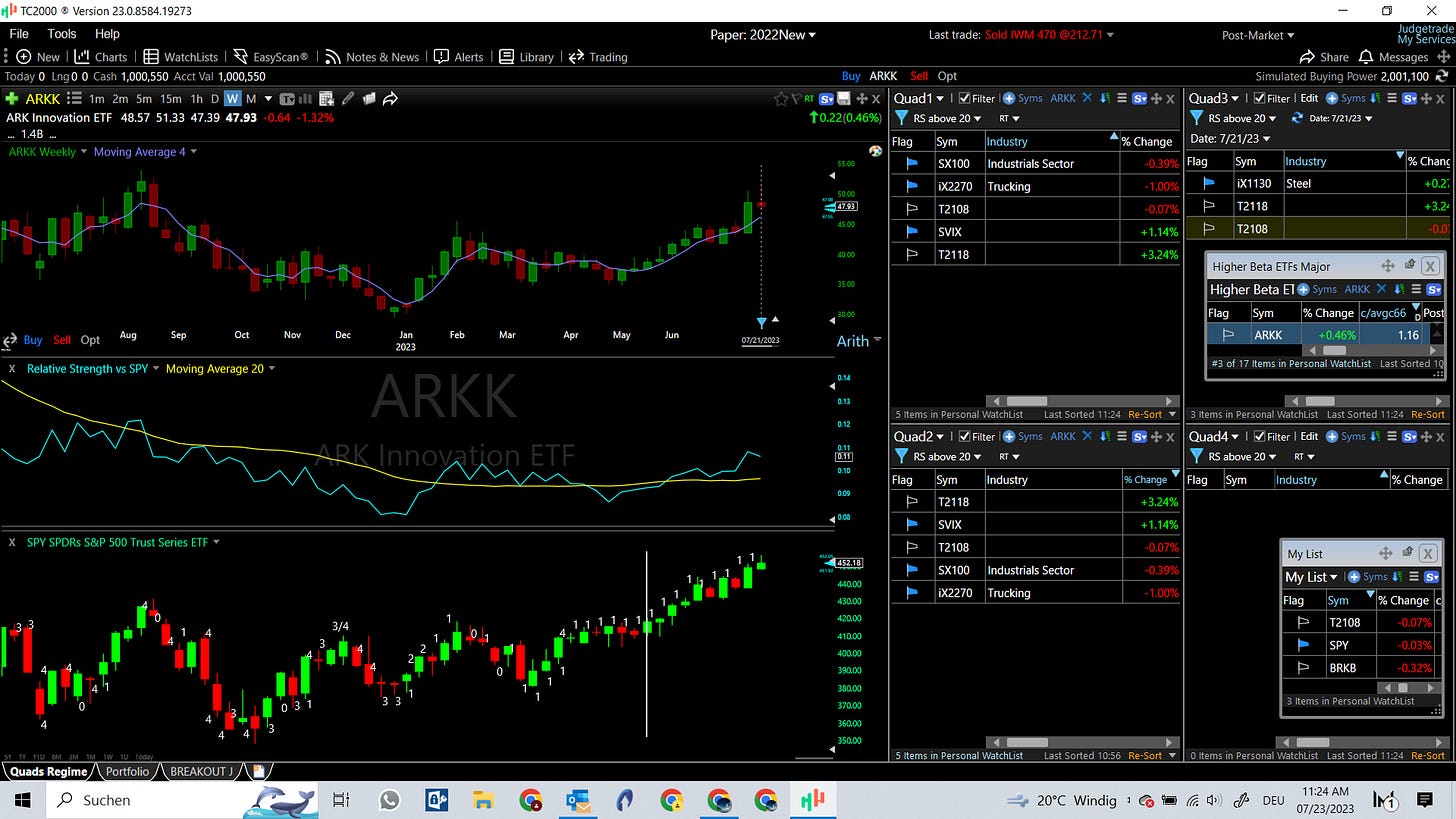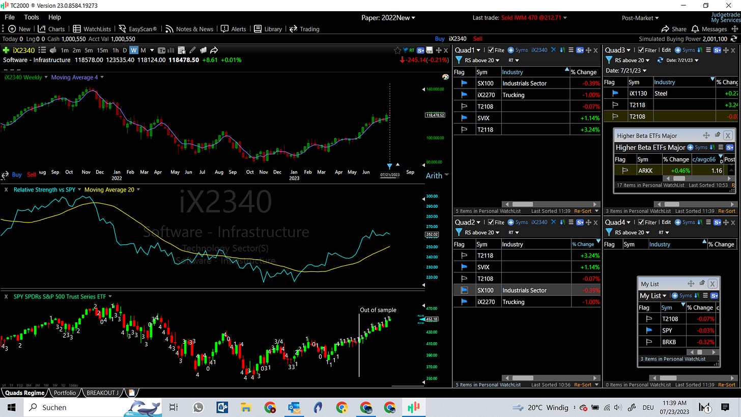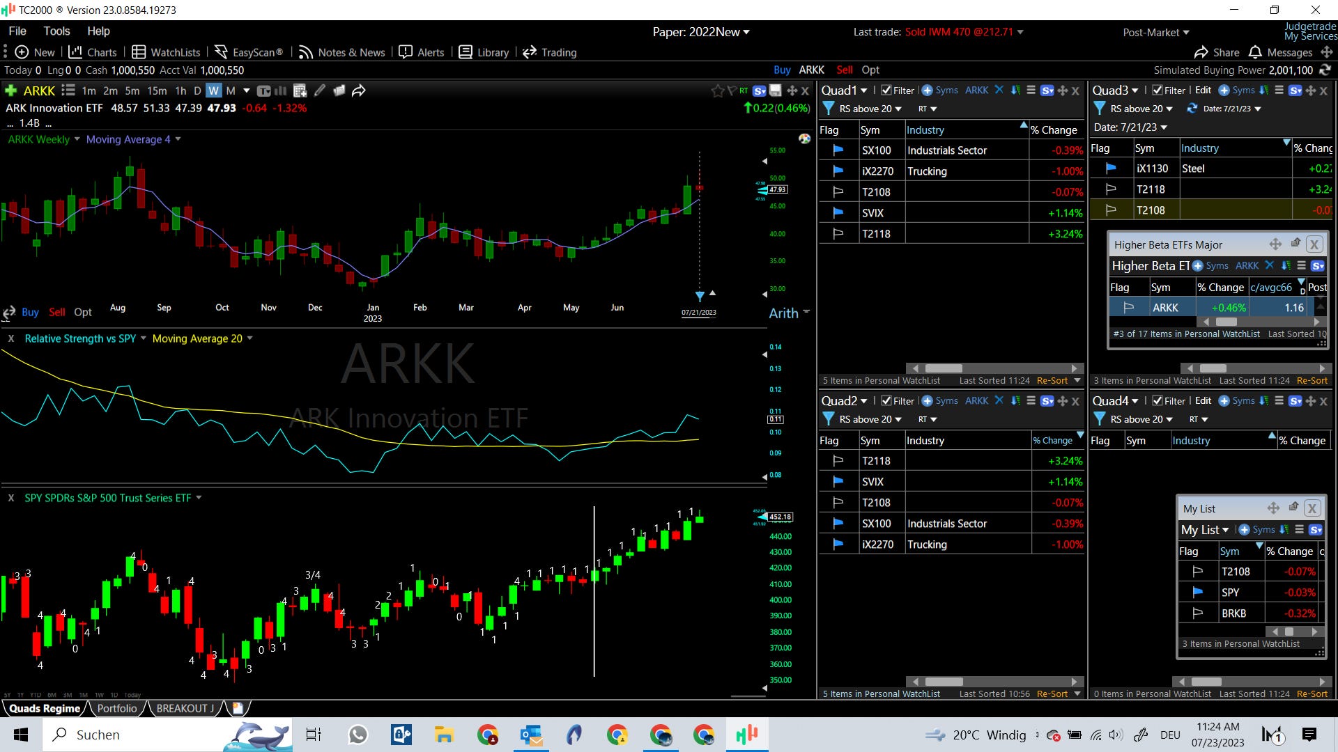 Almost all Quad1-2 exposures have upsloping 20 week moving average on relative strength: