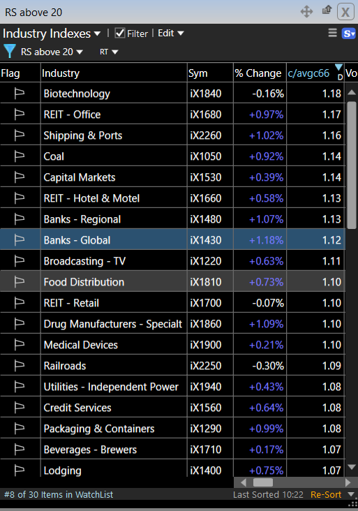 So, Biotech (long duration), Shipping (cycs), Capital Markets and Banks (both regional and global —> early cycle) are bullish trend into a 4% drawdown of the QQQs?