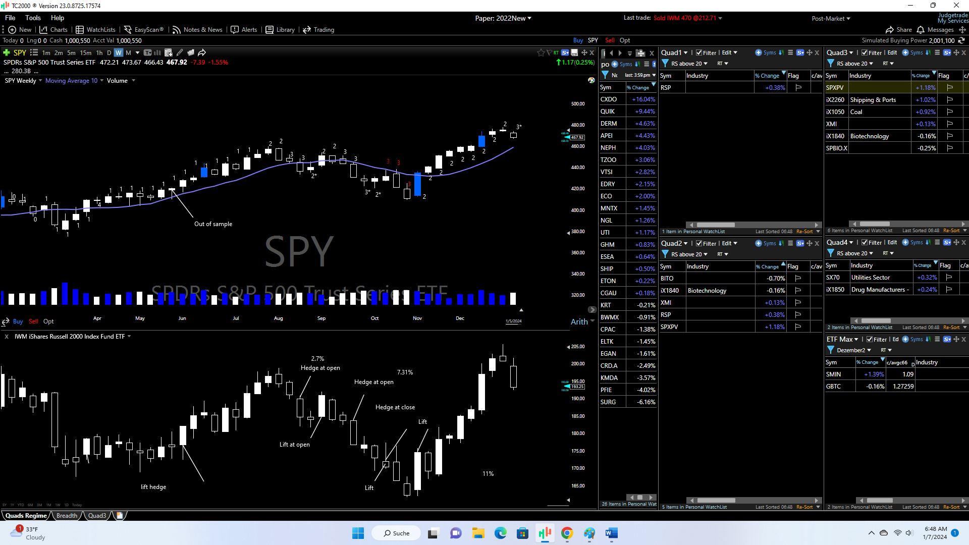 Also, I see a lot of breakouts working within the SP500 (Biotech MRNA for example)