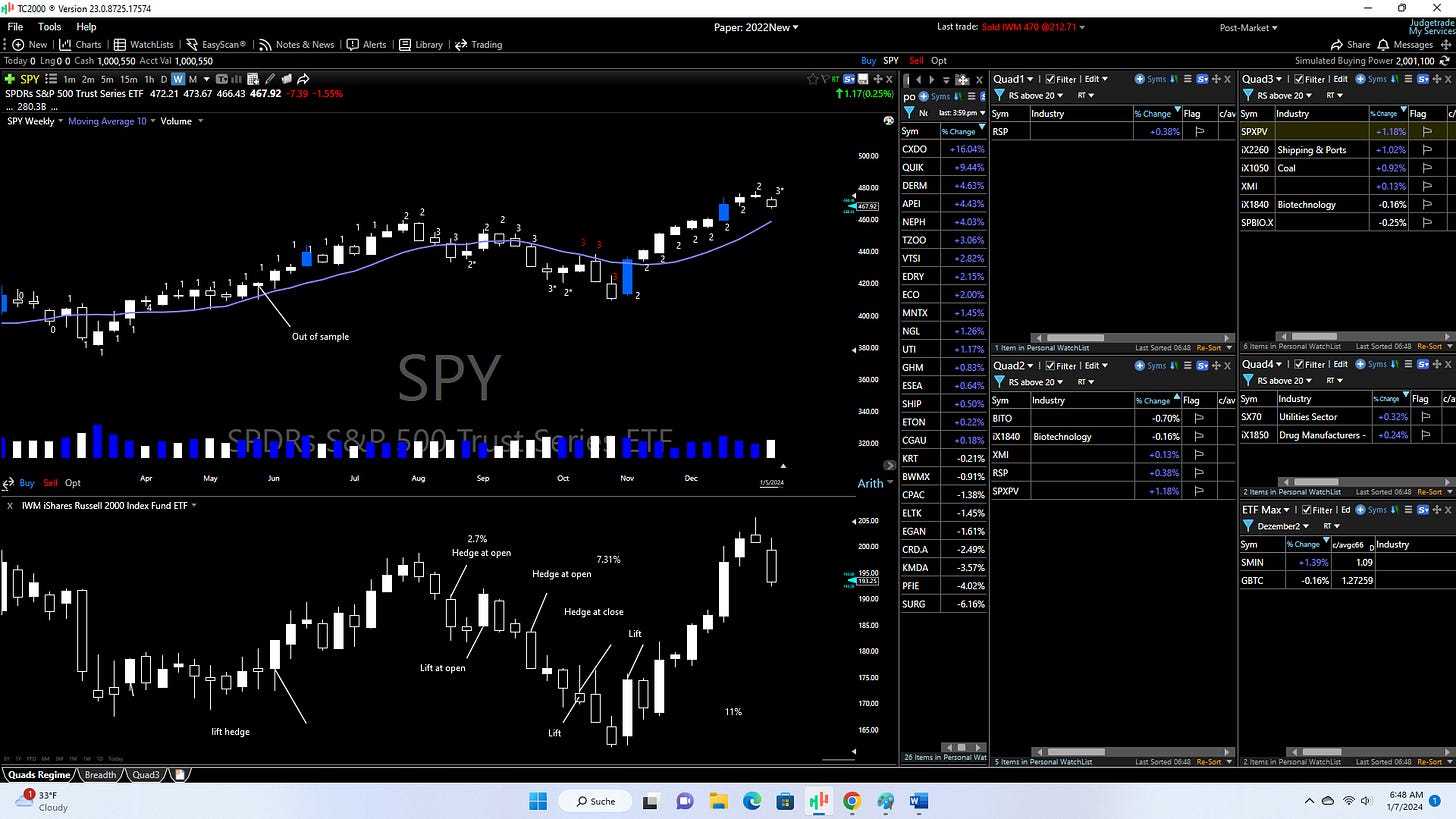 Risk Management first, so I am hedging my portfolio with a 20% short on IWM and 20% short on QQQ with leverage (90% long, 40% short).