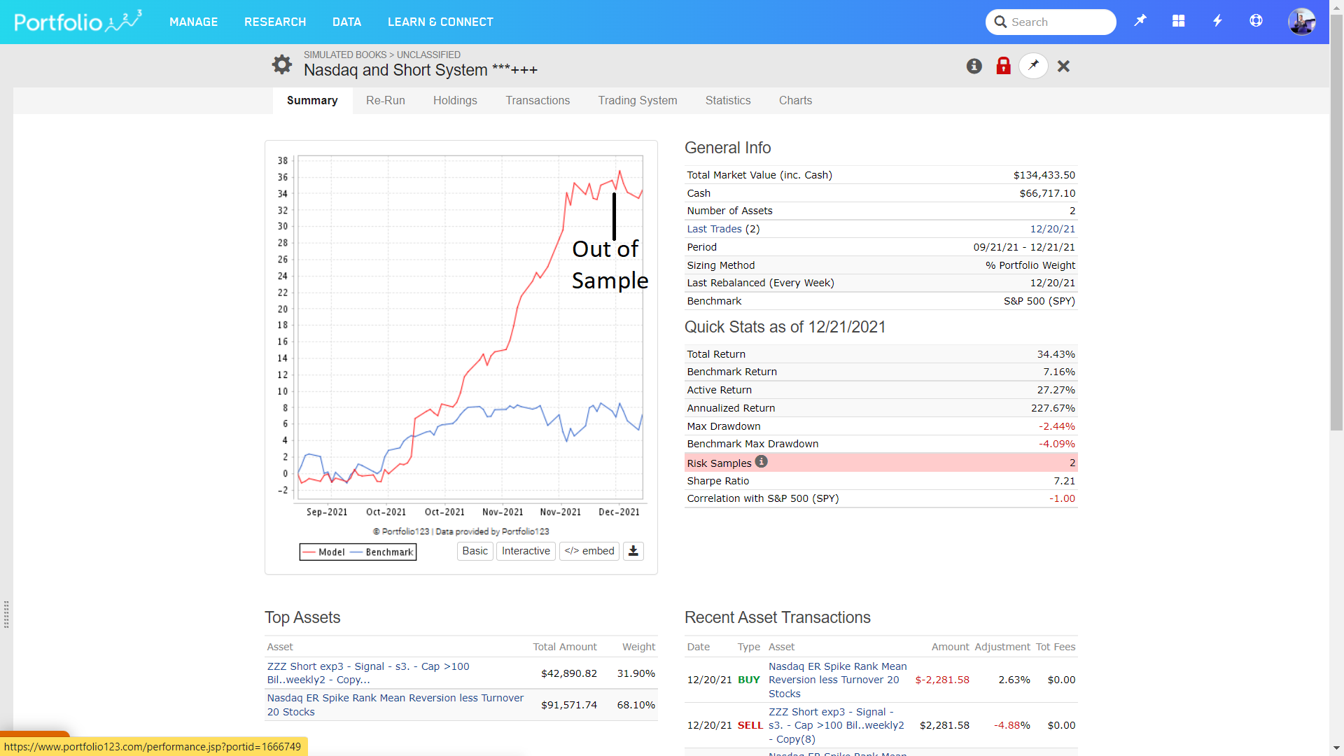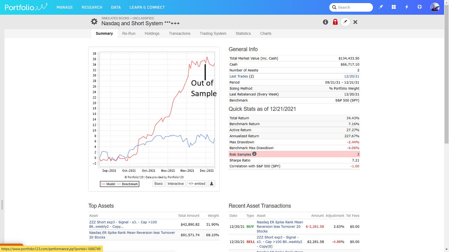 Here the back test results of the Nasdaq100 System, including OOS.
