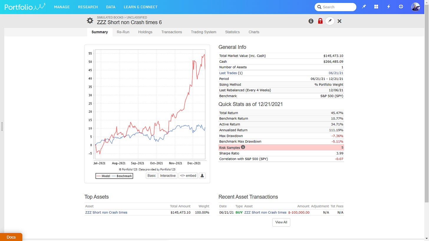 Also, the reference system does not outperform the SP500 so far, therefore I can see absolutely no reason to increase risk and to go all in here.