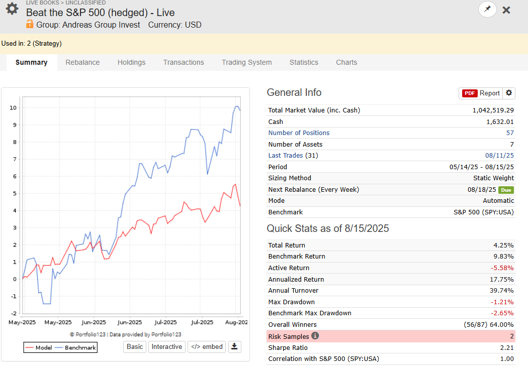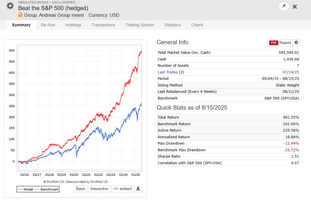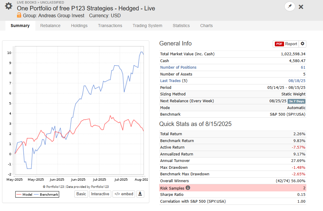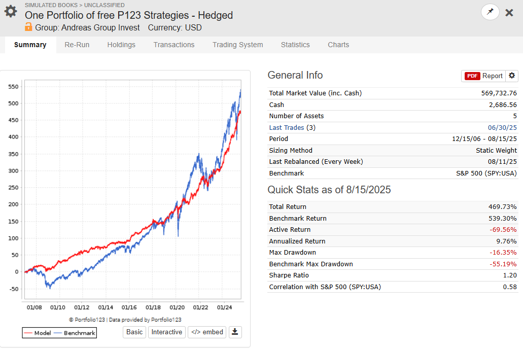 One Portfolio of Free P123 Strategies - Hedged