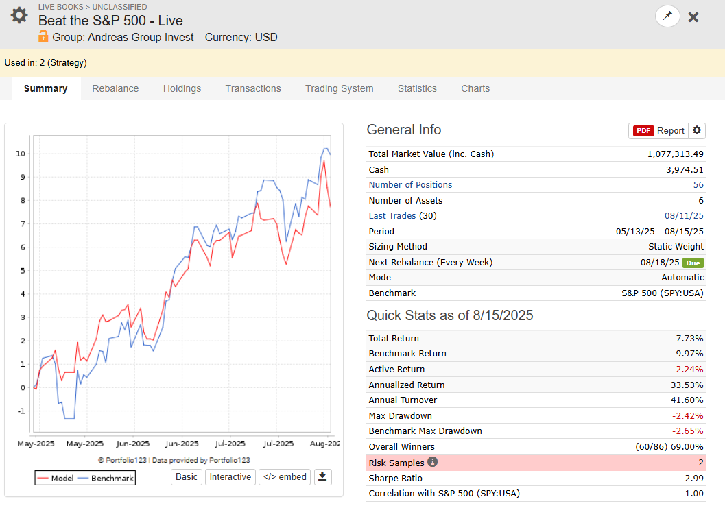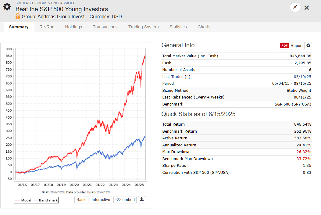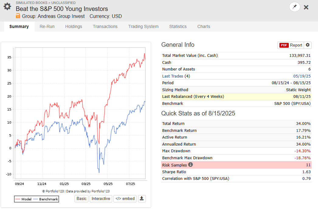 Beat the S&P 500 Young Investors: Out of sample live trading since October 2024