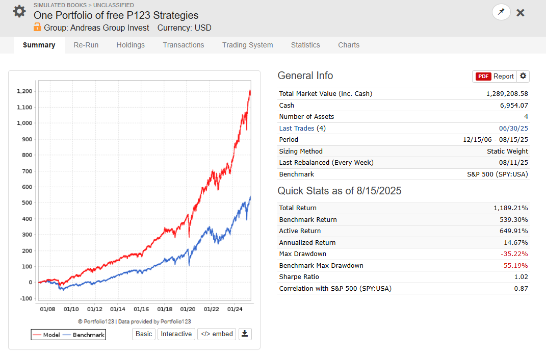 One Portfolio of Free P123 Strategies