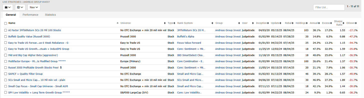 We are just starting out, but I will share a ton of Strategy Books in the coming weeks: Perfect for private Investors that want to use time proven out of sample Strategies in one holistic Strategy Book!