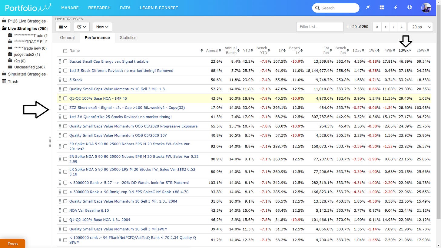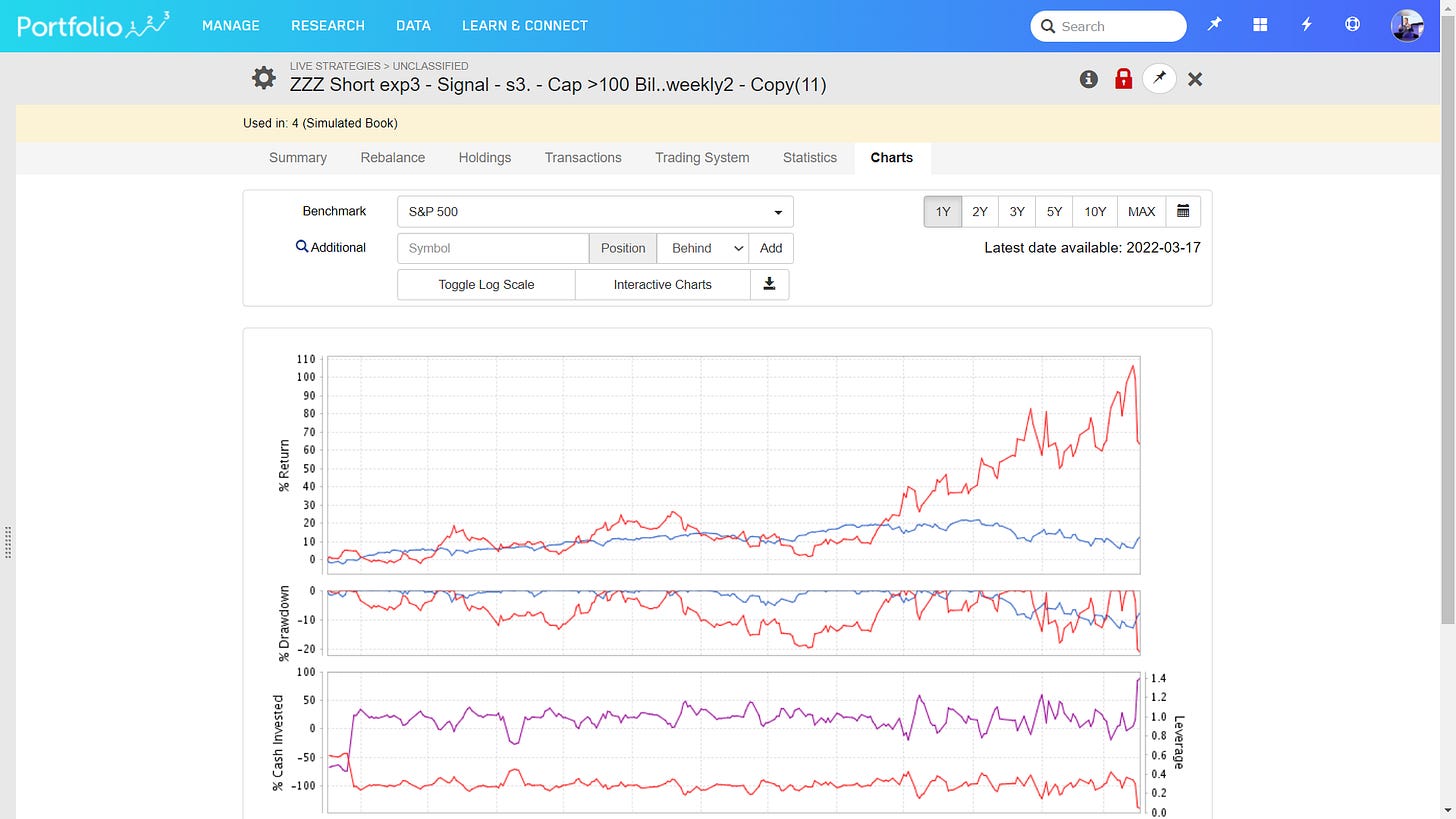 Also, there is currently only one (used to be > 15) shorting system in the top 20 of performance of my 250 trading systems, see below.