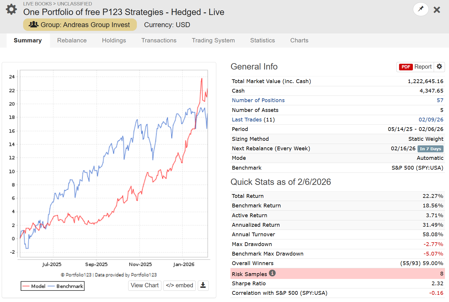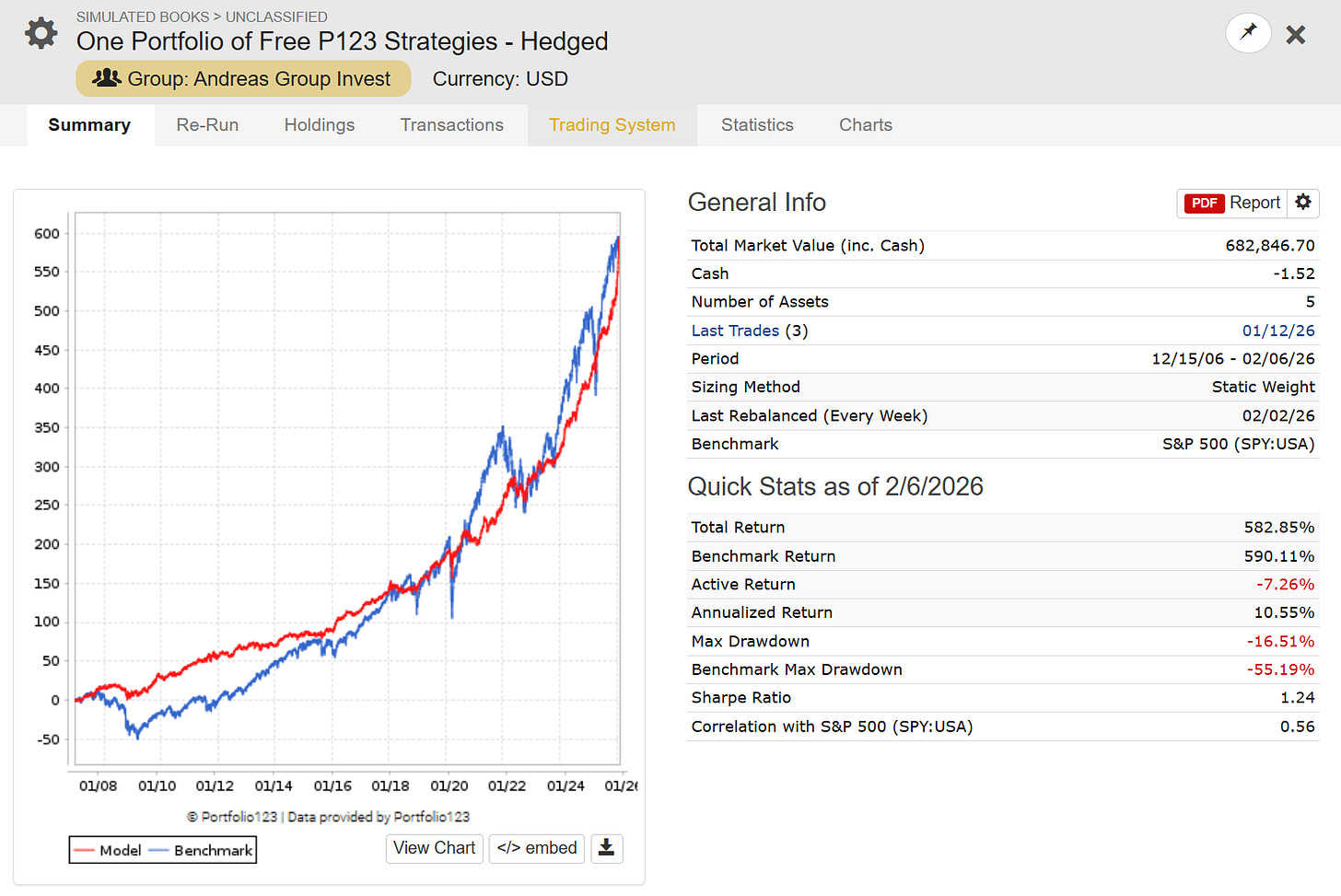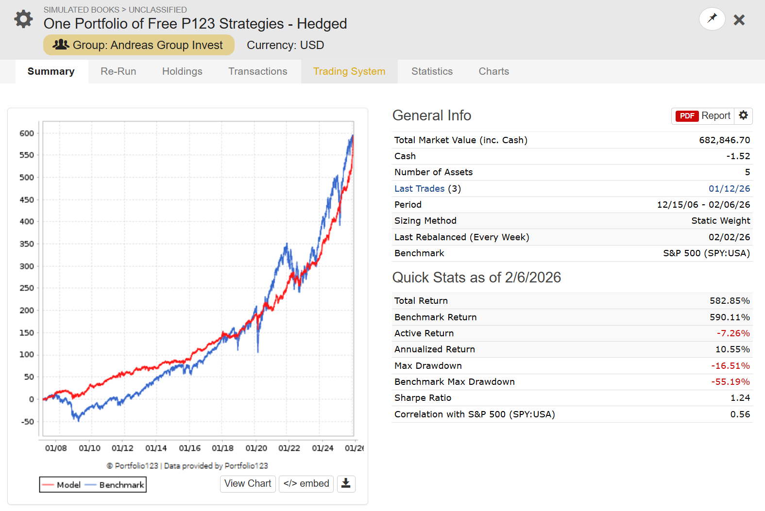 One Portfolio of Free P123 Strategies - Hedged