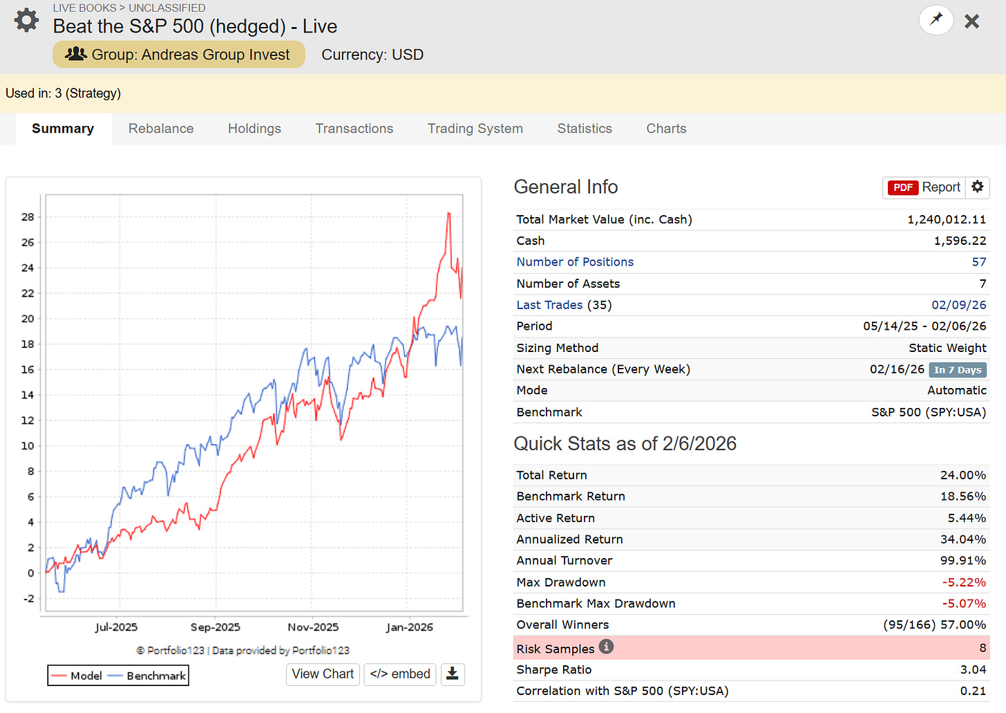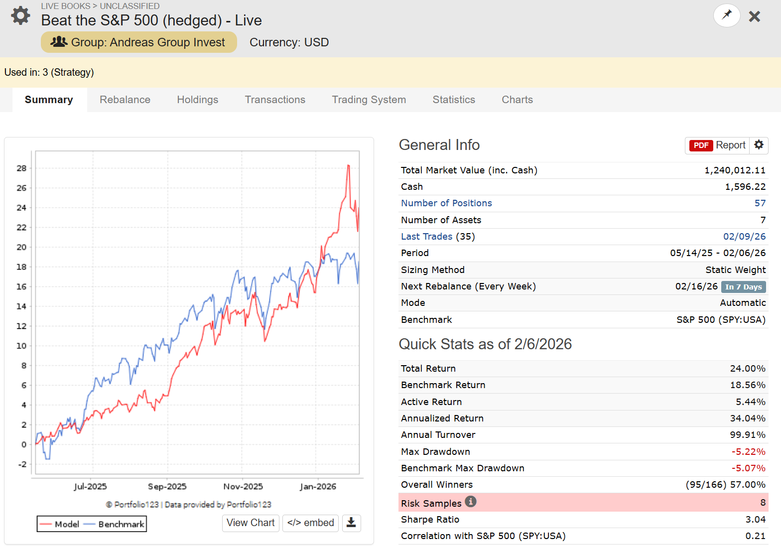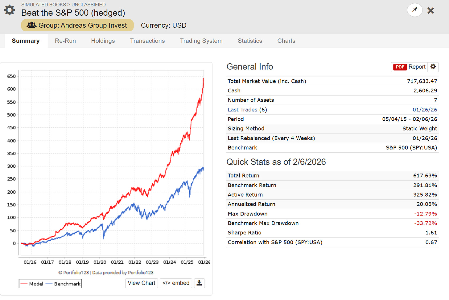 One Portfolio of Free P123 Strategies - Hedged