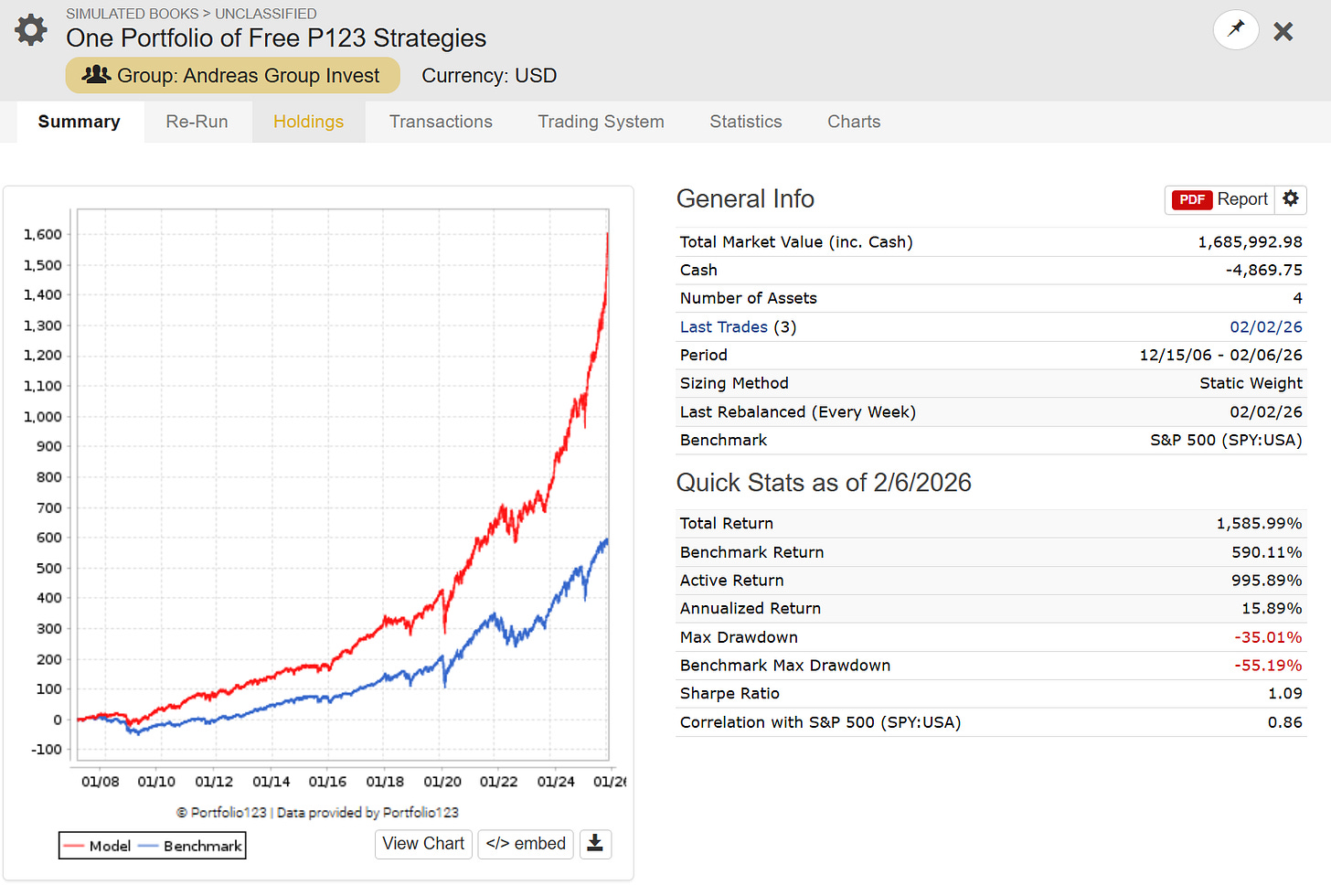 One Portfolio of Free P123 Strategies
