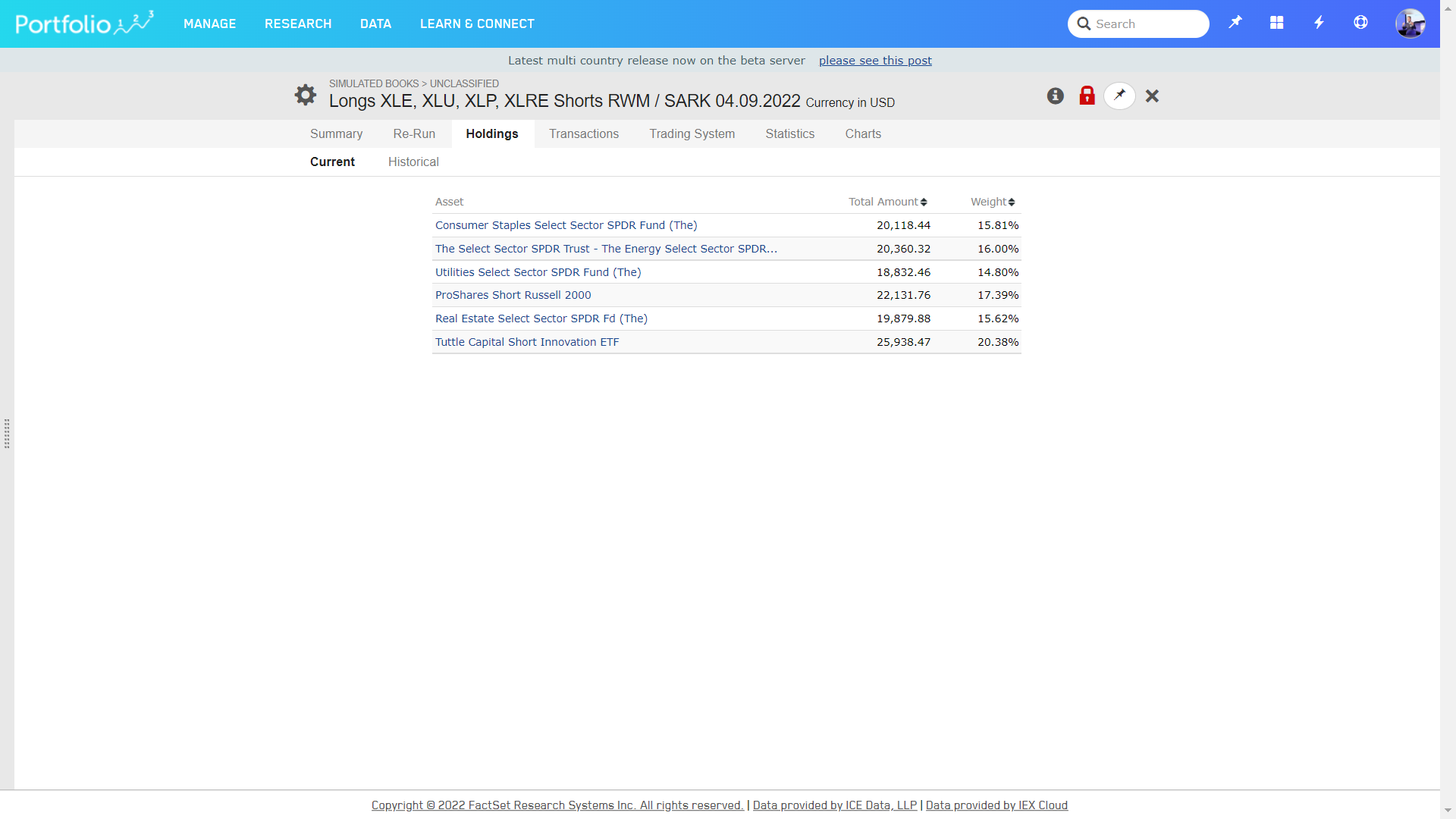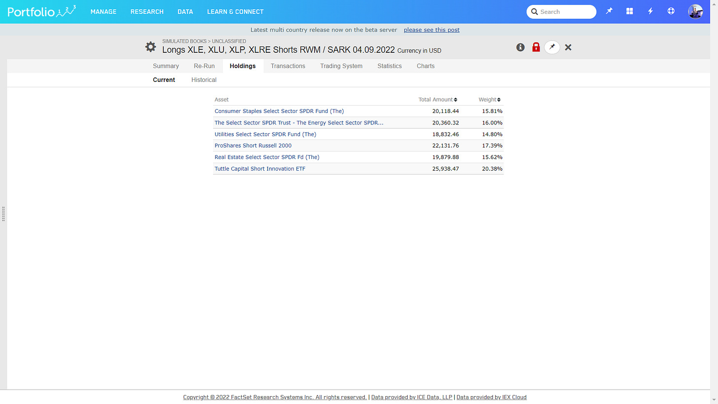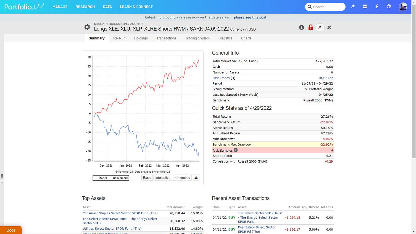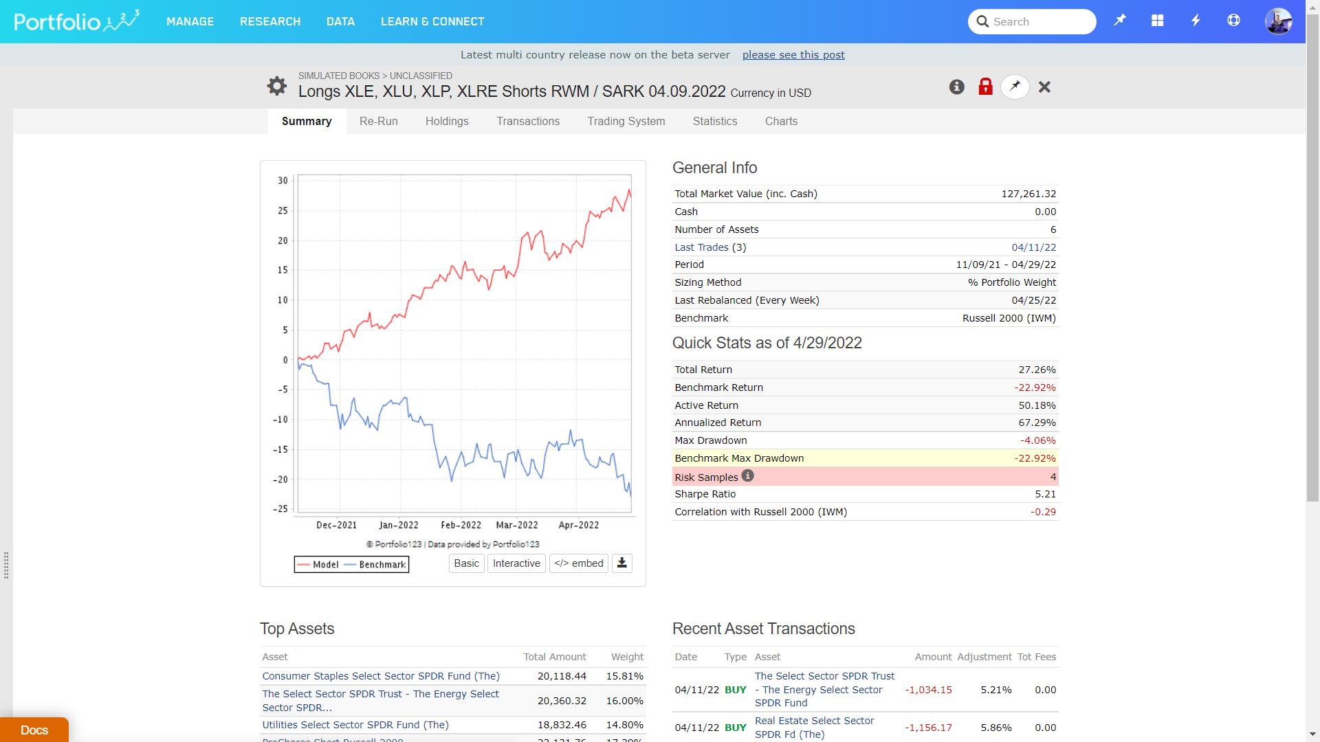 If you have implemented the model, please do rebalance on Monday, so all exposures should have around 16%, not more or less. Otherwise, SARK will get bigger and bigger and in a rally, it will offset you longs.