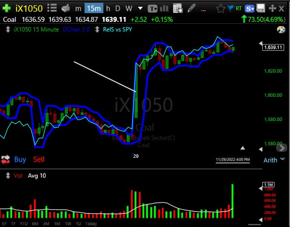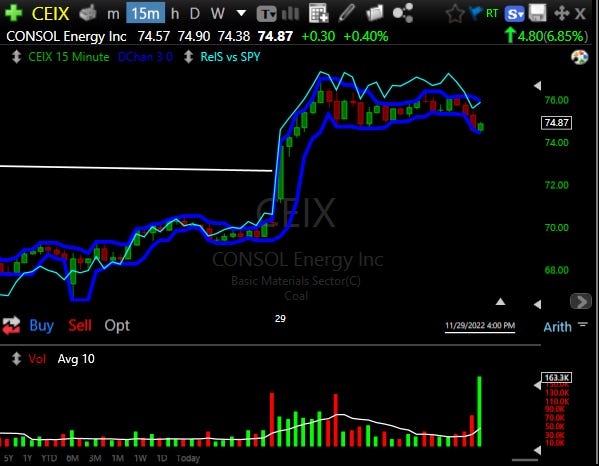 CEIX 0.00%↑ popped with the Industry Group and I took the trade (small position, very short holding period (already sold it) because of reasons I layed out yesterday).