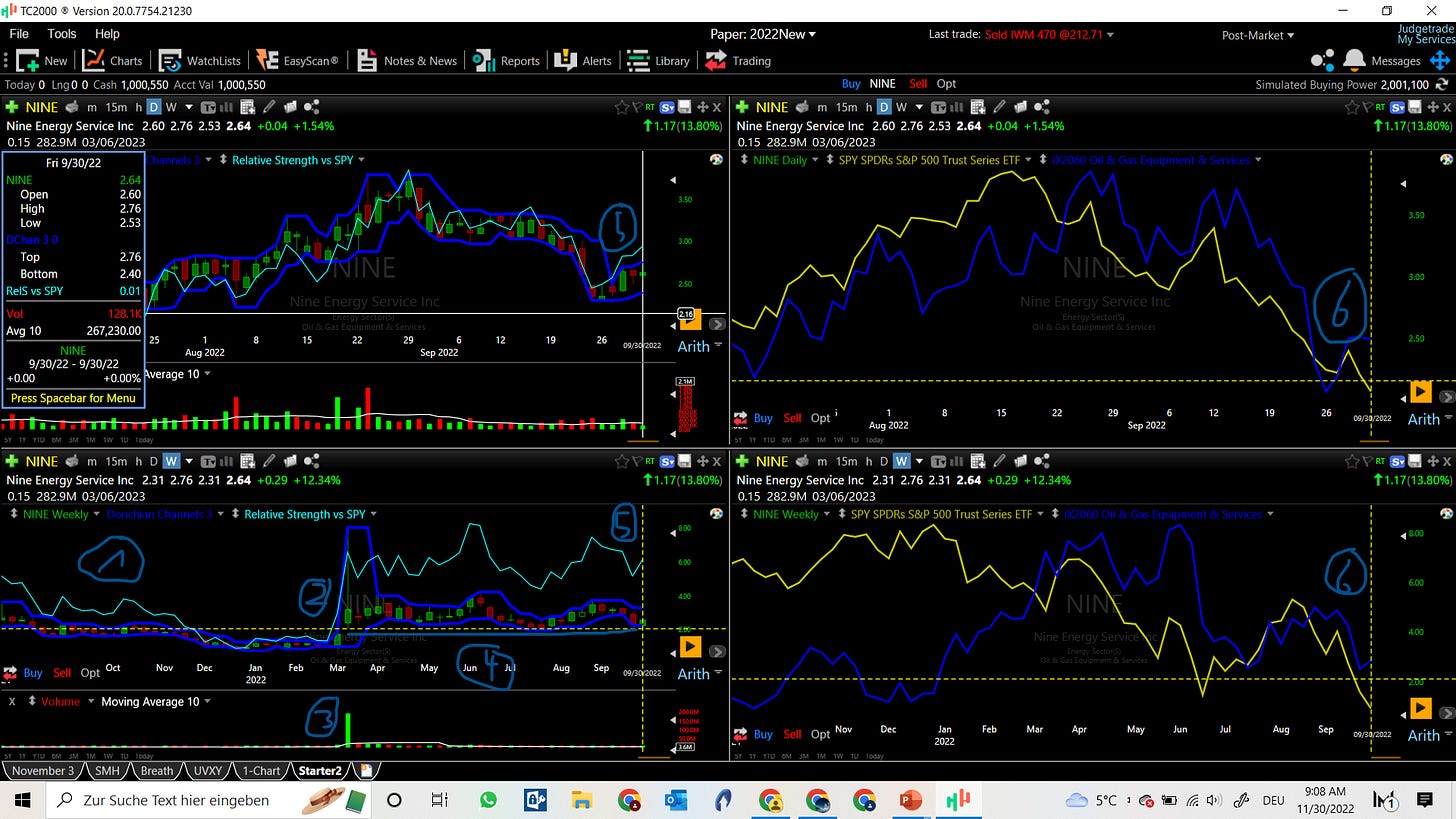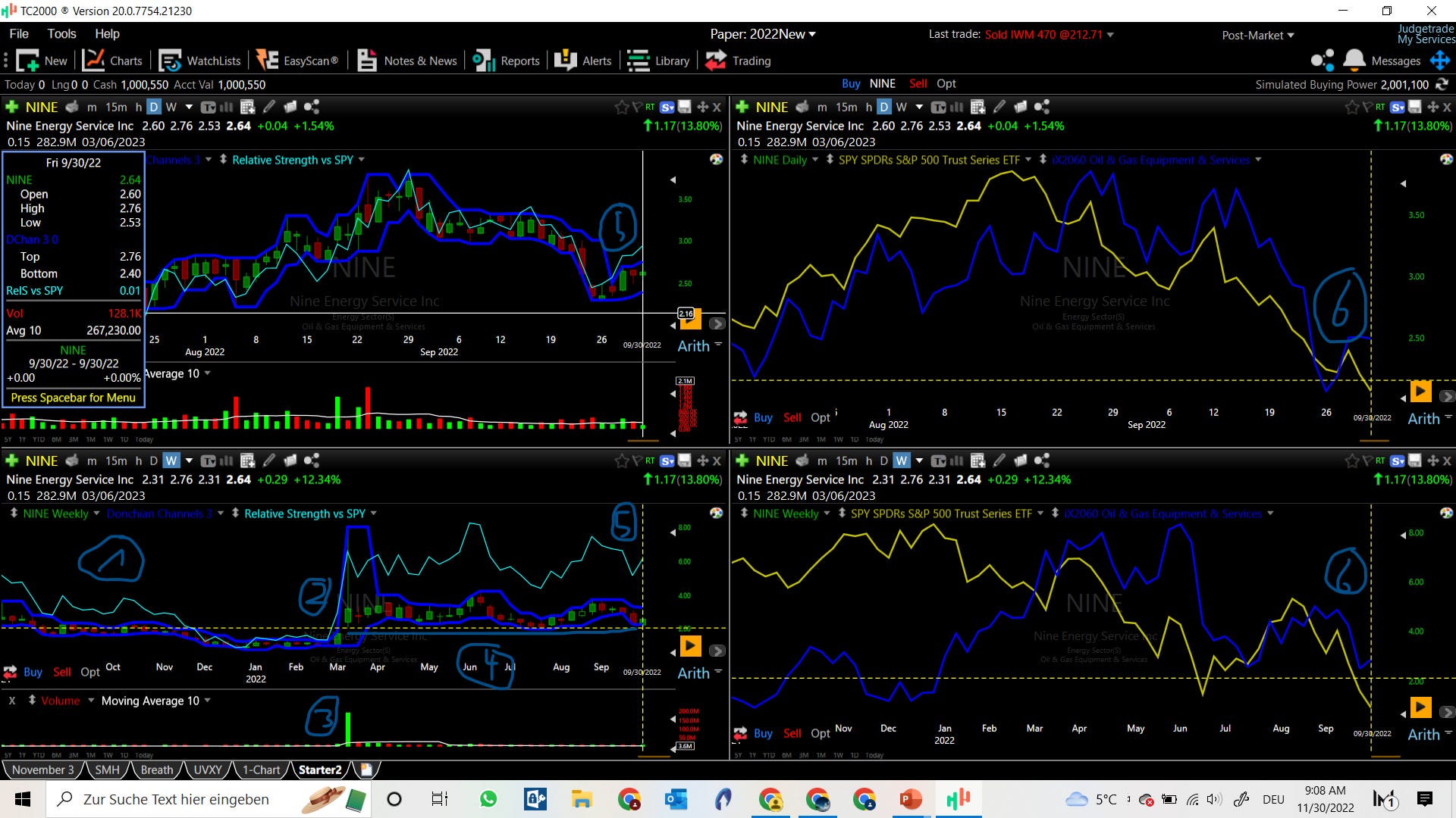 RS Line on the weekly above the channel (left bottom) and RS Line almost above the channel (it was above it one day before!).