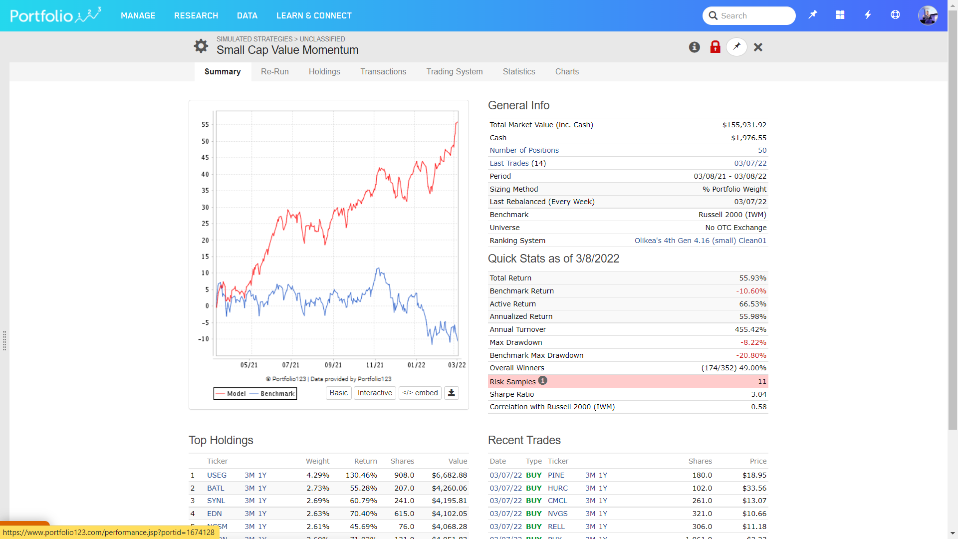 Small Cap Value Momentum: very strong (one point for risk on, small cap value momentum is strong if inflation is trending up, so one point for inflation exposures). I use my systems for this, but you could also have a look at XSVM (which is relative strong right now too, not as strong as my model, but you get the idea…):