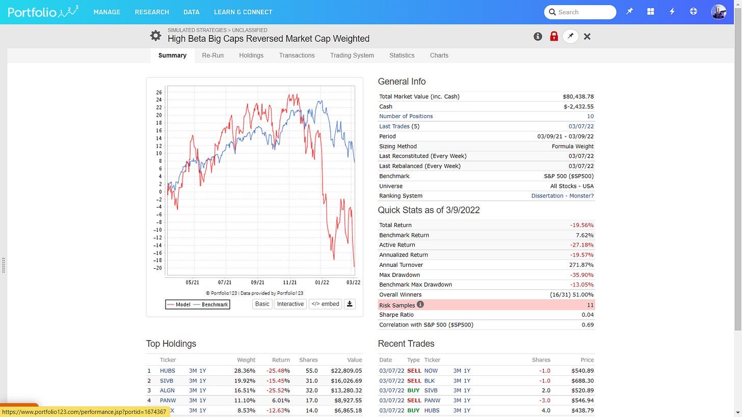 Mid to Big Cap High Beta —> weak, one point for risk off (for that you could use ARKK, which is even much weaker than my following model).