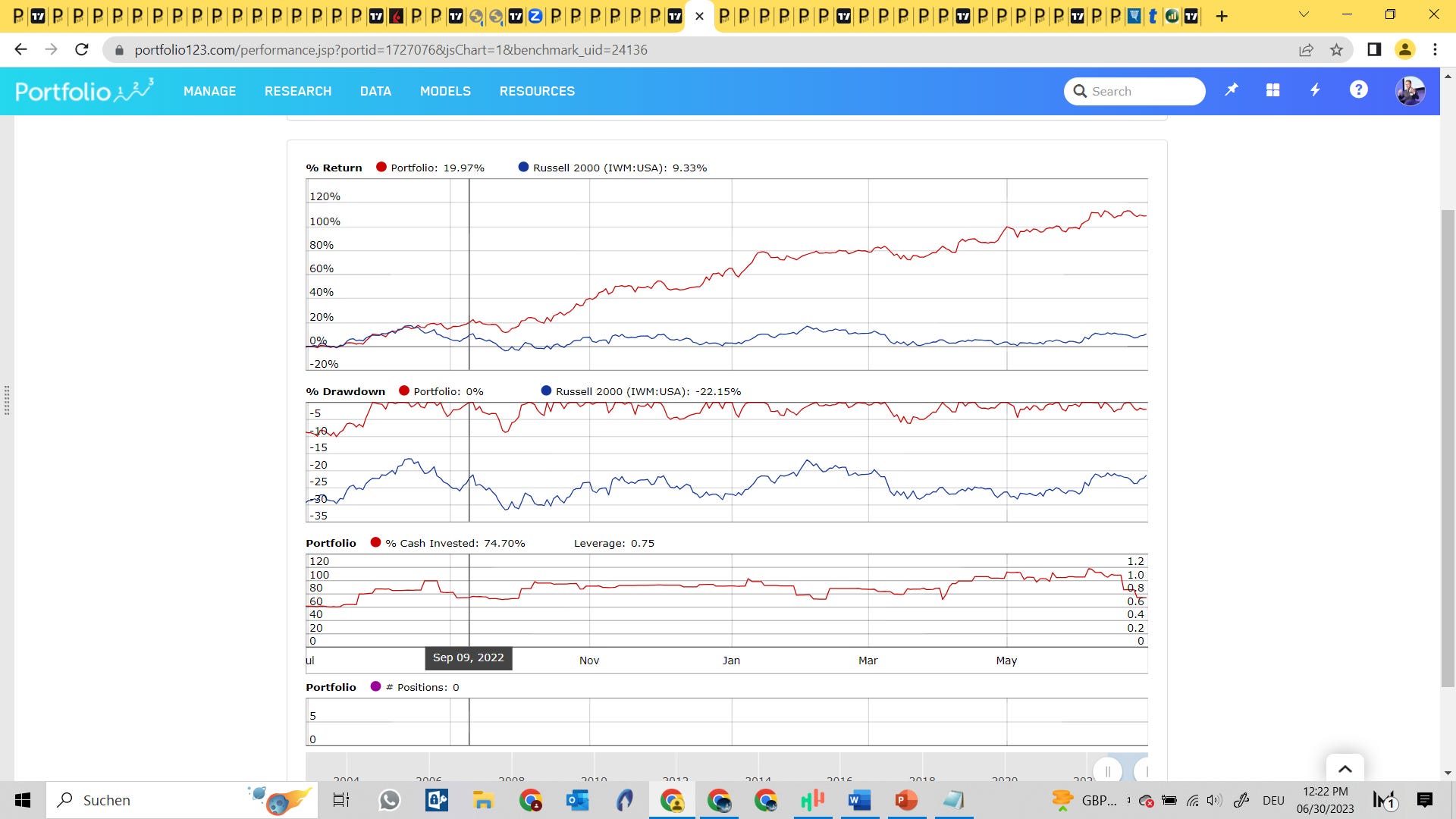 My small cap value momentum strategy book is showing some weakness + it raised 30% Cash.